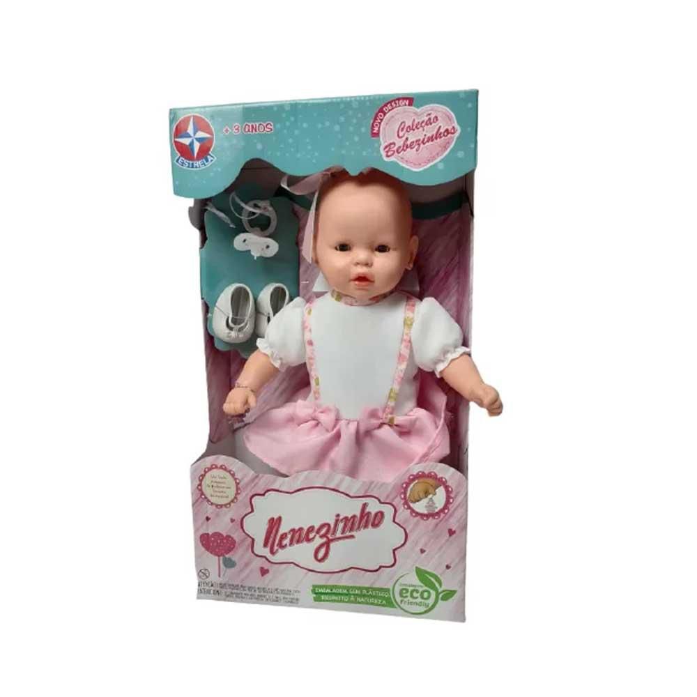 Boneca Nenezinho Vestido Branco e Rosa Estrela