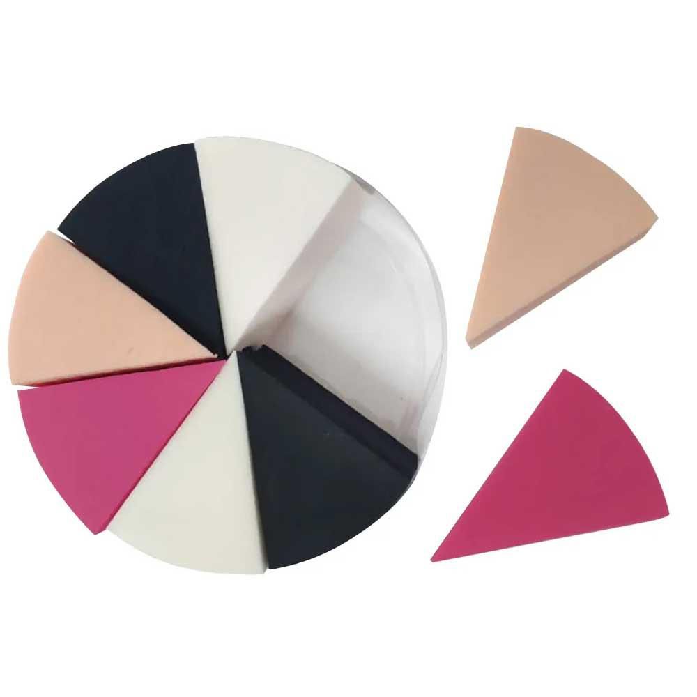 Kit com 8 Esponjas Triangulares no formato Pizza. Feita de látex. Serve para aplicar base e corretivo. As esponjinhas estão fazendo sucesso para aplicação de base e corretivo na pele, pois proporcionam um resultado e um acabamento perfeito na pele, são super macias, laváveis e com boa durabilidade. Fácil de aplicar, favorecendo as áreas de difícil acesso na make.