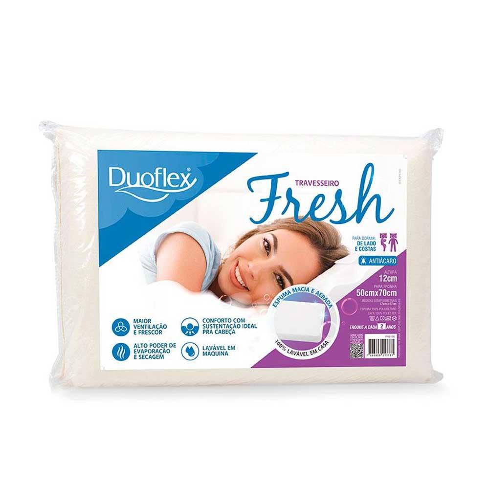 Travesseiro Duoflex Fresh, lavável em máquina, para fronha 50 x 70 cm, 12 cm de altura, firme.Feito com espuma de poliuretano expandida. Antiácaro.