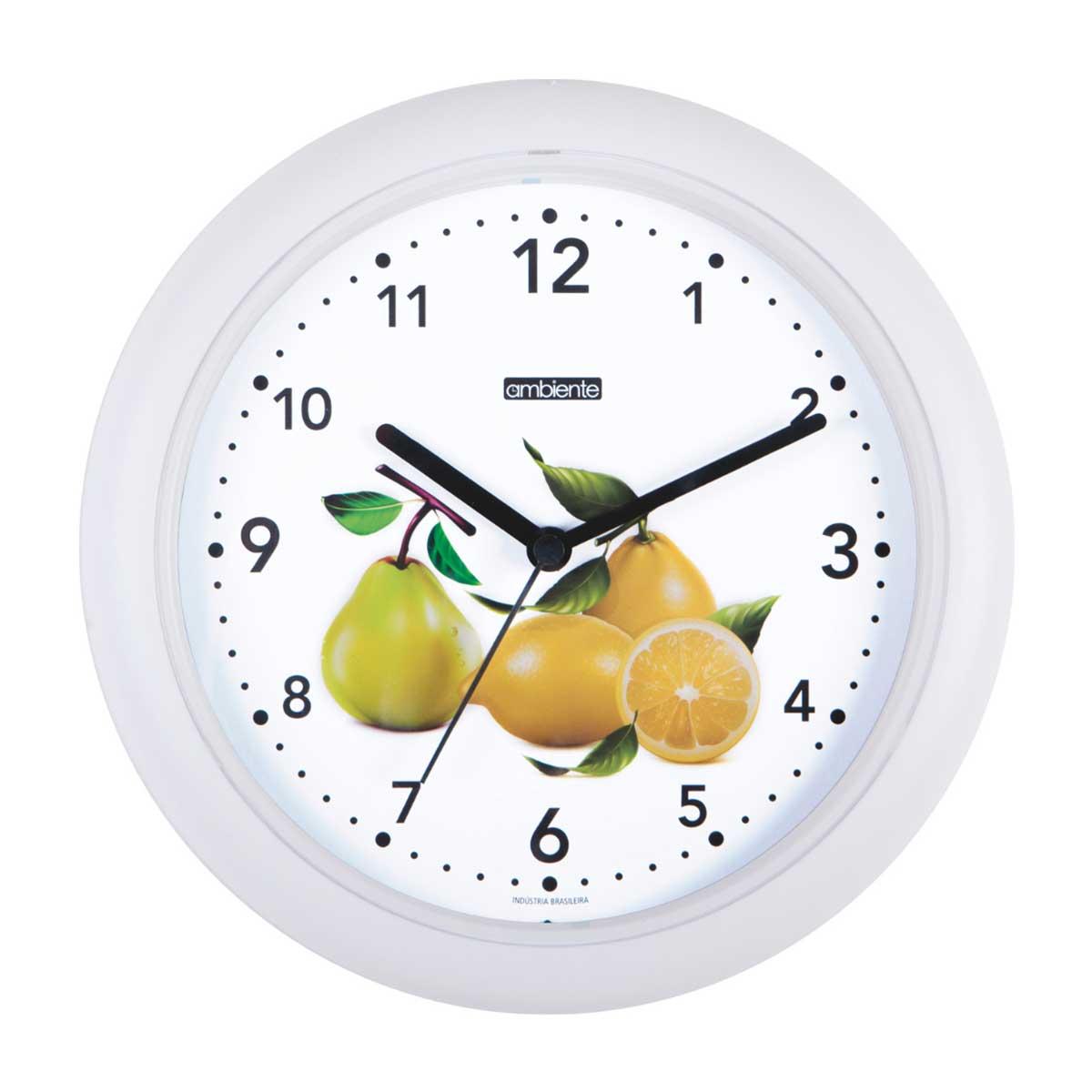 Relógio de Parede Ambiente 25cm Frutas 197300-021 Branco