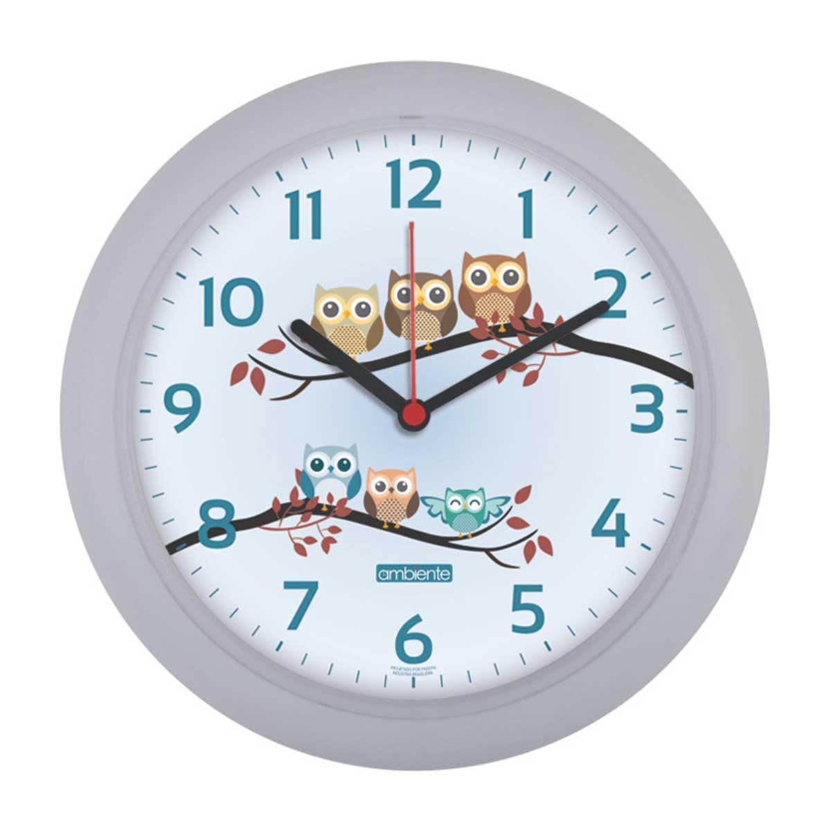 Relógio de Parede Ambiente 25cm Corujas 198100-024 Cinza