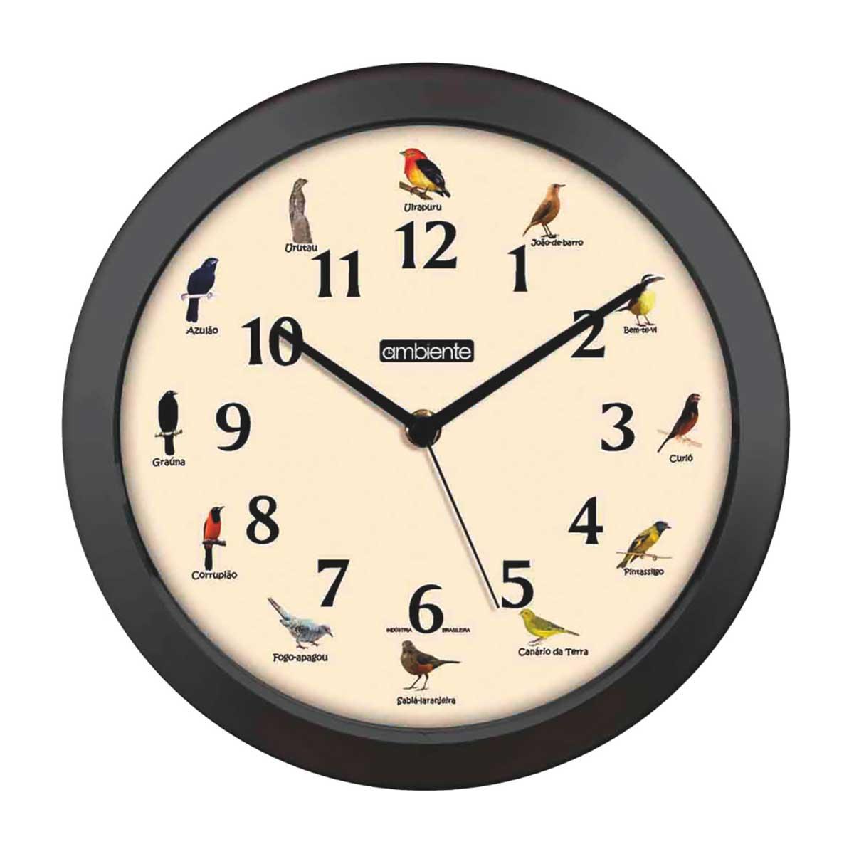 Relógio de Parede Ambiente Canto Dos Pássaros 1959-034 Preto