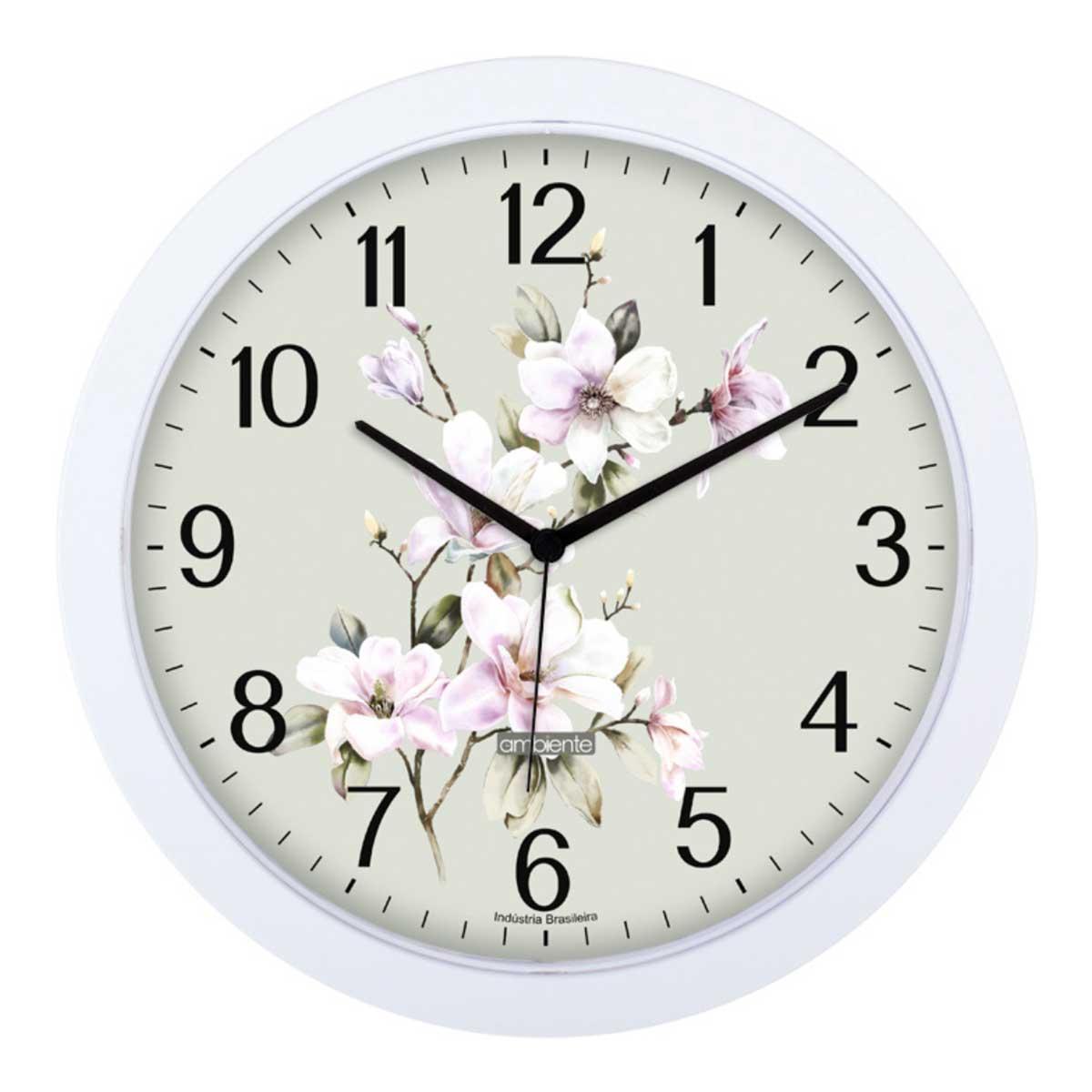 Relógio de Parede Ambiente 28cm Floral 119040-021 Branco