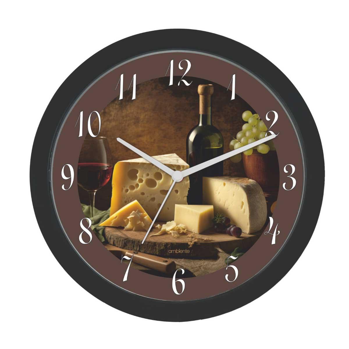 Relógio de Parede Ambiente Vinho e Queijos 119104-034 Preto